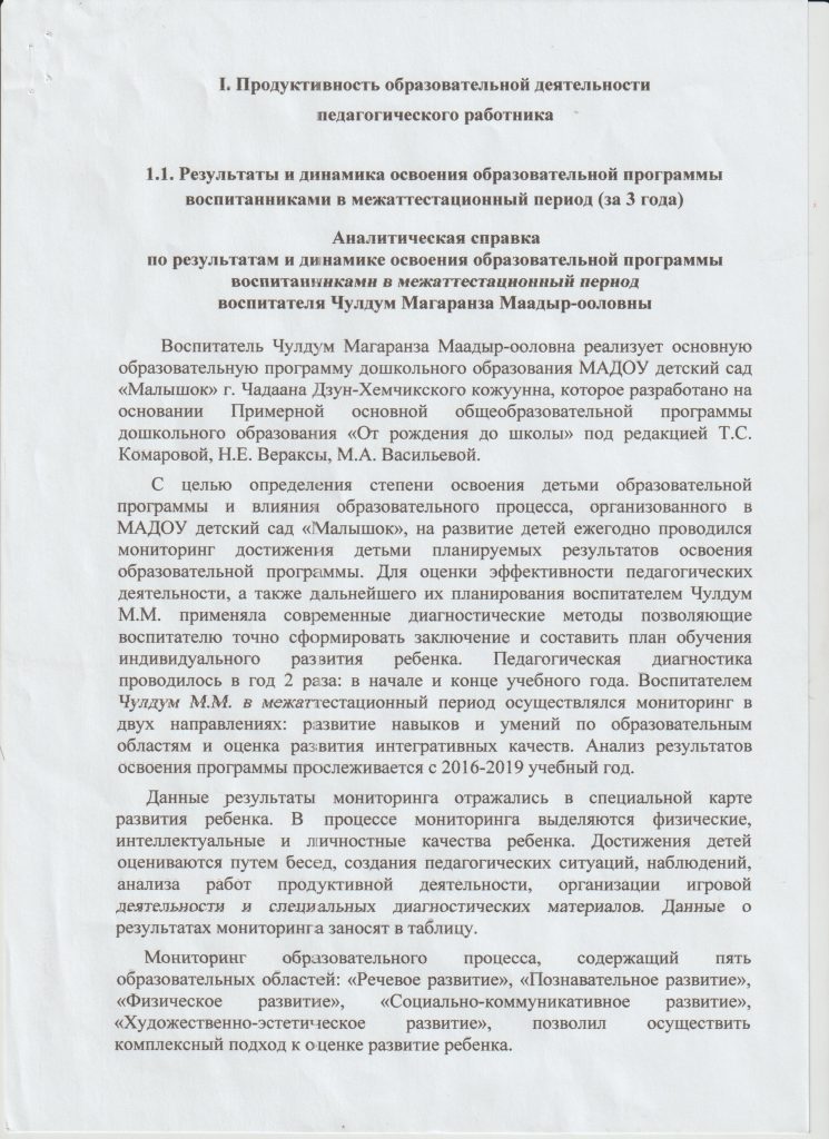 1. Продуктивность образовательной деятельности педагогического работника